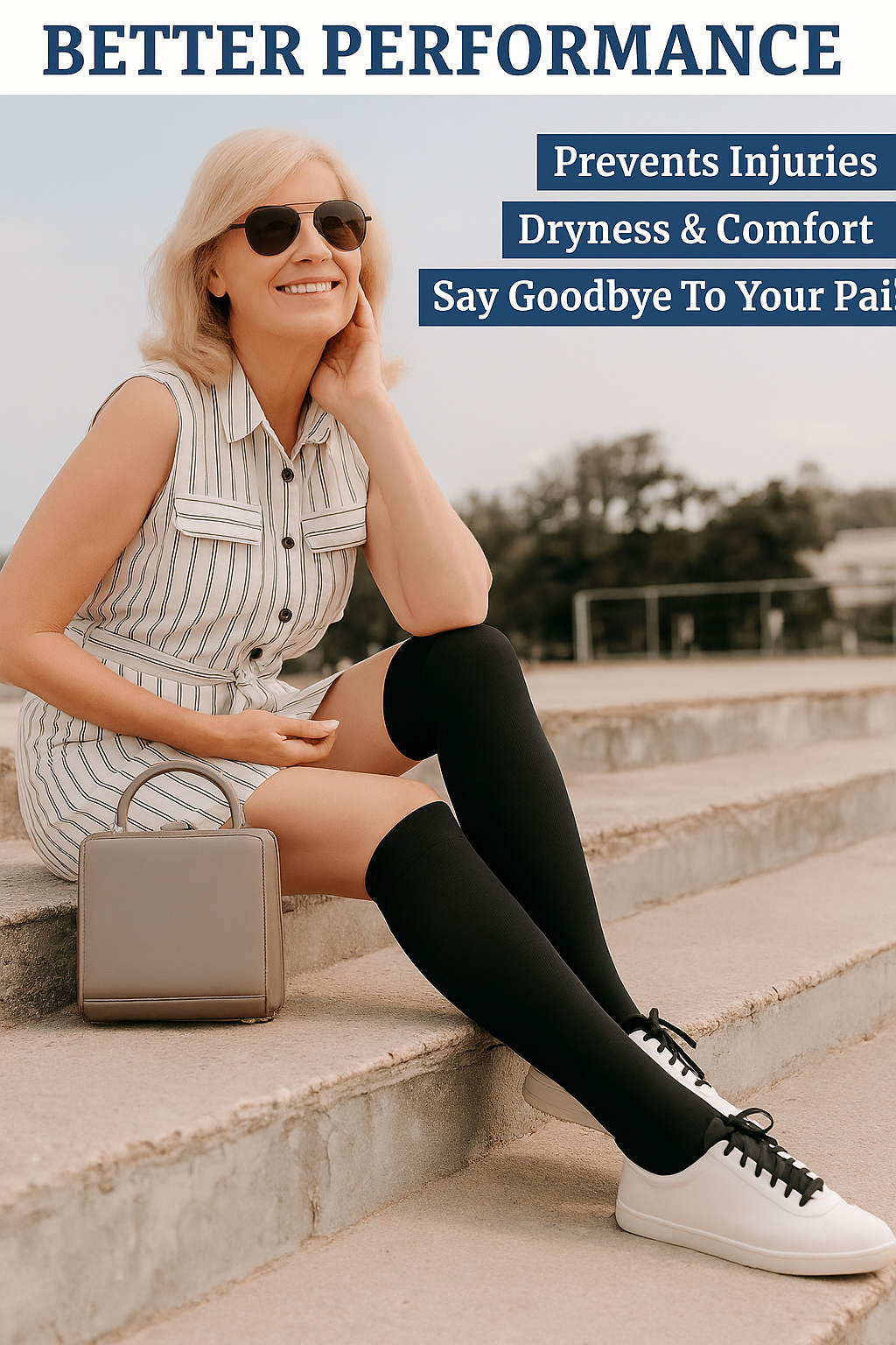 Experience less fatigue when wearing these compression socks during day-long standing or flights.